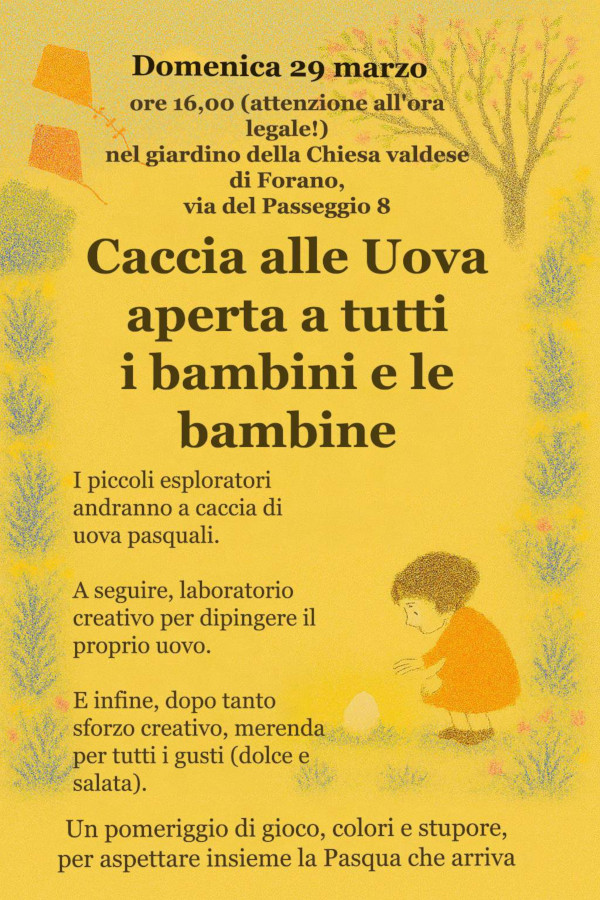 La direttrice esecutiva del Comitato Internazionale della GMP, Katie Reimer, presenta la GMP 2026 con le seguenti parole: “Il comitato nigeriano ha intrecciato la propria saggezza culturale con il bisogno universale di riposo. Attraverso simboli come la ciotola calabash, che rappresenta sia il sostentamento quotidiano che la provvidenza divina, ci ricordano come Dio ci venga incontro nella nostra stanchezza…..Mentre ci prepariamo per la Giornata Mondiale della Pace 2026, possiamo imparare a immedesimarci nell’invito di Gesù: “Venite a me, voi tutti che siete stanchi”. Insieme, diventiamo canali del riposo di Dio nel nostro mondo tormentato.” Che sia questo lo spirito e la filosofia che domina i nostri incontri. Qui il sito ufficiale della Giornata Mondiale di Preghiera!https://www.giornatamondialedipreghiera.it Mercatino del donoDomenica 15 marzo, dalle 15.30 alle 18.30 presso i locali della chiesa valdese.I “mercatini” del Dono sono occasioni durante le quali le persone possono scambiarsi oggetti usati (ma in buono stato) oppure proprie autoproduzioni, senza l’utilizzo di denaro. Il Dono è diverso dal baratto perché quest’ultimo prevede uno scambio ritenuto “equo”. Con il dono invece le persone portano oggetti che vogliono semplicemente dare via senza aspettarsi necessariamente qualcosa in cambio. Durante il mercatino, tutto ciò che è poggiato sui tavoli è considerato in dono e può essere liberamente preso. È dunque un’occasione per promuovere il riuso e riciclo ma anche, e soprattutto, vivere interazioni personali spontanee e disinteressate. La partecipazione è libera e aperta a tutti e non è necessario portare qualcosa per partecipare: è gradita anche solo la presenza, la compagnia o la condivisione di cibo o bevande per la merenda. Oltre agli oggetti, viene incentivato anche il dono delle proprie competenze: durante i “mercatini”, infatti, vengono solitamente organizzati dei piccoli laboratori o workshop, tenuti da chi ha voglia di condividere con gli altri ciò che sa fare. Domenica 15 marzo ci sarà anche una postazione dove le persone potranno portare e scambiare i propri semi e piantine. Festa valdese della libertàDomenica 22 Febbraio, al termine dell'Agape, accenderemo il falò della libertà![]() Domenica 22 febbraio celebreremo la festa in ricordo delle Lettere patenti di Carlo Alberto, promulgate il 17 febbraio 1848, che concedevano i diritti civili e politici ai valdesi delle Valli piemontesi. Il culto sarà presieduto dal pastore Marco Emanuele Casci, che serve la Chiesa valdese di Perugia. Il 17 febbraio è la Festa della libertà. Ricorrenza speciale per le chiese valdesi, ampliatasi poi come ricorrenza protestante, questa giornata si trova al centro della ormai consueta Settimana della Libertà promossa dalla Federazione delle chiese evangeliche in Italia (FCEI). Il 17 febbraio 1848 il re di Sardegna Carlo Alberto concesse, con le Lettere Patenti, i diritti civili ai suoi sudditi protestanti, i valdesi. Il mese seguente, il 29 marzo 1848, fece lo stesso per gli ebrei. La notizia si sparse di valle in valle, di borgata in borgata, con i falò che ancora oggi caratterizzano le celebrazioni per questa data così importante. Per i valdesi e per tutti gli evangelici, ma anche per chi afferma la laicità e per tutta la società civile, questa data è un giorno di festa in cui si celebra la libertà di coscienza, di pensiero e di religione. Settimana di preghiera per l'unità dei cristiani 2026Mercoledi 21 gennaio:![]() Presso la parrocchia San Giuseppe Operaio,alle ore 20,30 Preghiera per la pace, Chiesa Cattolica latina, Chiesa Ortodossa Rumena, Chiesa Ortodossa Copta Egiziana, Chiesa Valdese, nell'ambito della settimana di preghiera per l'unità dei cristiani. Vengono dall’Armenia i testi per i sussidi della Settimana di Preghiera per l’Unità dei Cristiani del 2026. L’équipe internazionale incaricata è dal 1968 nominata congiuntamente dal Dicastero per la Promozione dell’Unità dei Cristiani (Dpcu) e dalla Commissione Fede e Ordine del Consiglio Mondiale delle Chiese (Cec). La redazione dei materiali era stata affidata per il prossimo anno per l’appunto al Dipartimento per le relazioni interconfessionali della Chiesa apostolica armena. Il Dipartimento ha coordinato il gruppo ecumenico di cristiani armeni che ha preparato la prima bozza dei testi. Il testo di riferimento è tratto da Efesini, capitolo 4, versetto 4: «Vi è un corpo solo e un solo Spirito, come pure siete stati chiamati a una sola speranza, quella della vostra vocazione». Come si legge nei materiali introduttivi la Chiesa apostolica armena, riconosciuta come una delle più antiche comunità cristiane del mondo, ha svolto un ruolo fondamentale nel plasmare l’identità spirituale e storica del popolo armeno per quasi due millenni. Fondata all’inizio del IV secolo, con radici che risalgono all’epoca apostolica, trascende l’organizzazione religiosa; incarna la resilienza nazionale, il patrimonio culturale e la forza spirituale di un popolo. Oltre a offrire una guida spirituale, la Chiesa ha salvaguardato le tradizioni, la lingua e i valori armeni, soprattutto durante i periodi di avversità e di dominazione straniera. In tempi contemporanei, soprattutto in mezzo a sfide come il conflitto nel Nagorno-Karabakh e lo sfollamento della popolazione dell’Artsakh, la Chiesa continua a servire come fonte di forza e di conforto per gli armeni. Oggi è un faro di fede, unità e continuità per gli armeni di tutto il mondo e fornisce spunti di riflessione che risuonano nella più ampia comunità cristiana globale. Il testo redatto da Cec e Dpcu ricorda che le origini della Chiesa apostolica armena sono profondamente radicate negli insegnamenti degli apostoli Taddeo e Bartolomeo, che evangelizzarono l’Armenia già nel I secolo d.C.. Tuttavia, fu sotto la guida di San Gregorio Illuminatore, il primo Catholicos (patriarca) ufficiale dell’Armenia, che il crist