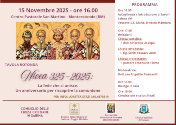 Rispetto e riconoscimento, cammini comuniNon è un aspetto rituale. Oltre alla attiva partecipazione, sentita e non rituale, alla settimana di preghiera per l'unità dei cristiani, ospitata negli anni scorsi anche presso la nostra chiesa, manteniamo contatti e favoriamo iniziative comuni con la Chiesa Cattolica e le altre confessioni cristiane presenti sul territorio. Nel corso dell'anno 2025 sono stati compiuti i primi passi per la costituzione di un Consiglio ecumenico delle chiese della Sabina, la cui prima iniziativa è stata l'organizzazione di un interessante convegno in occasione del 17mo centenario del Concilio di Nicea. Le attività proseguono nell'obiettivo di rafforzare il dialogo, la collaborazione e la conoscenza reciproca.